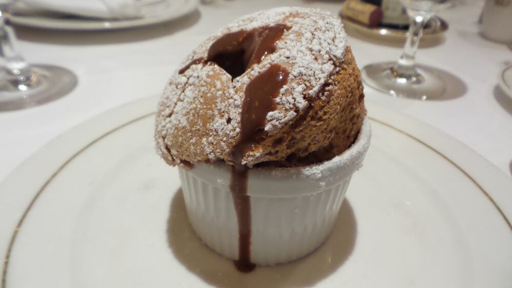 Per il dolce vado sul sicuro, tortino al cioccolato, riempito al momento con cioccolata calda, accompagnato da una pallina di gelato alla crema : voto 10.