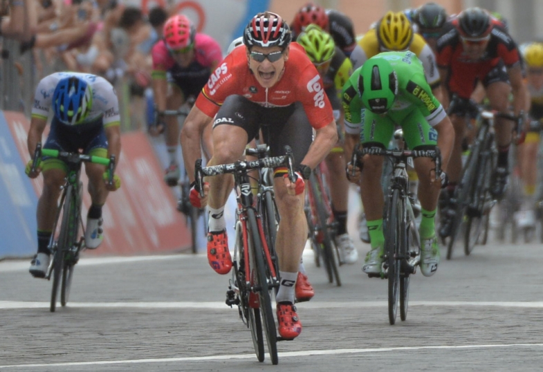 Andrè Greipel, il Gorilla è tornato vincendo la lunghissima volata della 5° tappa da Praia a Mare-Benevento, infilando così la quarta vittoria in carriera al Giro d’Italia e pareggiando subito i conti con Marcel Kittel. Ora sono a quota quattro tutti e due i velocisti teutonici, in un Giro 2016 che, in tre volate, ha parlato solamente tedesco . Arnaud Demare, il vincitore dell’ultima Milano Sanremo, finisce ancora secondo, come era successo nello sprint di Nijmegen( dove aveva vinto Kittel ). Terzo un ottimo Sonny Colbrelli (Bardiani-Csf) su un arrivo adatto alle sue caratteristiche. L’ultimo chilometro in leggera salita con una pendenza del 3% , con una sorta di pavè era un invito per i velocisti con più resistenza .