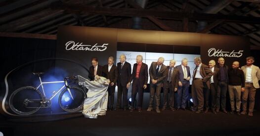 Grandissima attesa per la presentazione della bici gioiello che Ernesto Colnago si e' divertito a costruire per il traguardo del suo 85esimo compleanno , un traguardo volante come direbbe lui.