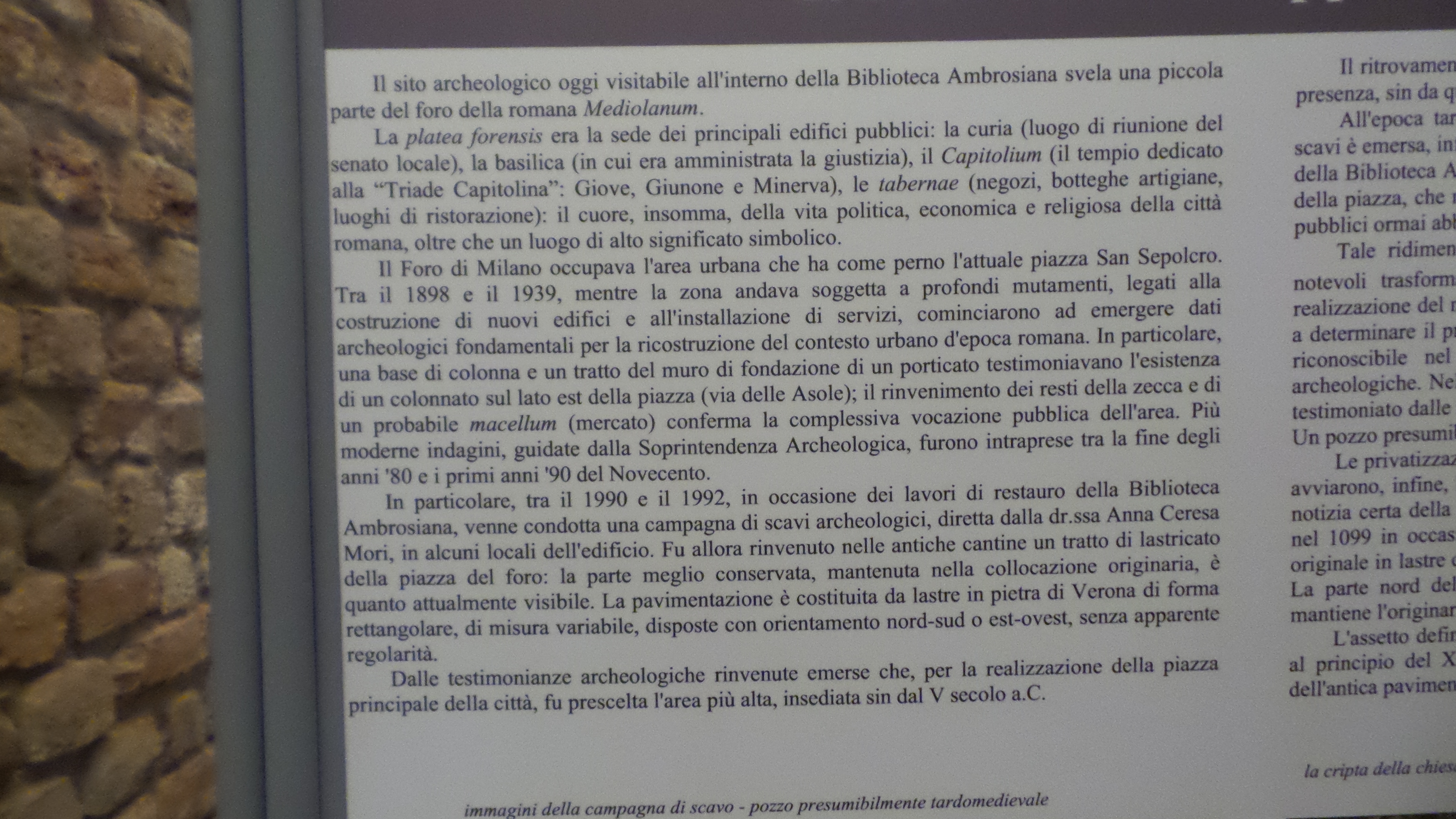Il Forum si estendeva, inoltre, al di sotto delle attuali vie dell'Ambrosiana, piazza San Sepolcro, via Cardinale Federico, piazza Pio XI e parte di via Moneta.