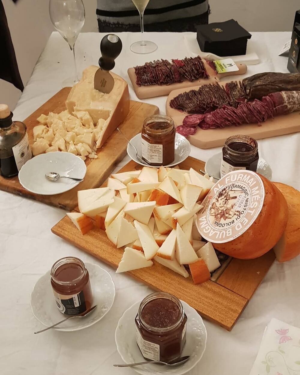 Come antipasto ci siamo fatti deliziare dai crostini con straccetti di punta d’anca marinata di pecora, salame, slinzega e violino - stagionato quattro mesi - tutto rigorosamente di pecora . Questi tre salumi sono cucinati con aglio, alloro, rosmarino e ginepro, quindi non troppe spezie al fine di mantenere vivo e “chiaro” il gusto profondo dell'ovino. Poi sempre come antipasto, grana padano, parmigiano reggiano altri formaggi da gustare con marmellate o aceto balsamico, il tutto accompagnato da gustosi grissini.