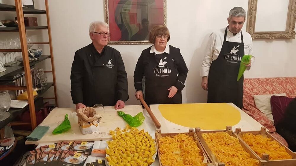 La pancia – devo essere sincero – era già bella piena, ma appena venuto a conoscenza dei primi, ho trovato altro posto, d’altronde non potevo rinunciarci! I primi piatti sono stati preparati dall’Accademia della Sfoglia di Rina Poletti del Pastificio “La Lanterna”, che con la sua brigata ha preparato la pasta all’uovo davanti a noi, esperienza straordinaria e divertente. La preparazione dei piatti è stata affidata ai cuochi del ristorante “Via Emilia” che trovate in Via della Moscova, 27 Milano. Loro ci hanno preparato le tagliatelle al ragù bolognese, tortelli al burro e tortelli alla vecchia Modena, con ricotta in purezza e pancetta grattugiata sopra. Soltanto ripensandoci mi viene una voglia che non vi dico! Per chi volesse deliziarsi con una superlativa cucina emiliana qua a Milano City, il ristorante “Via Emilia”, fa al caso vostro!