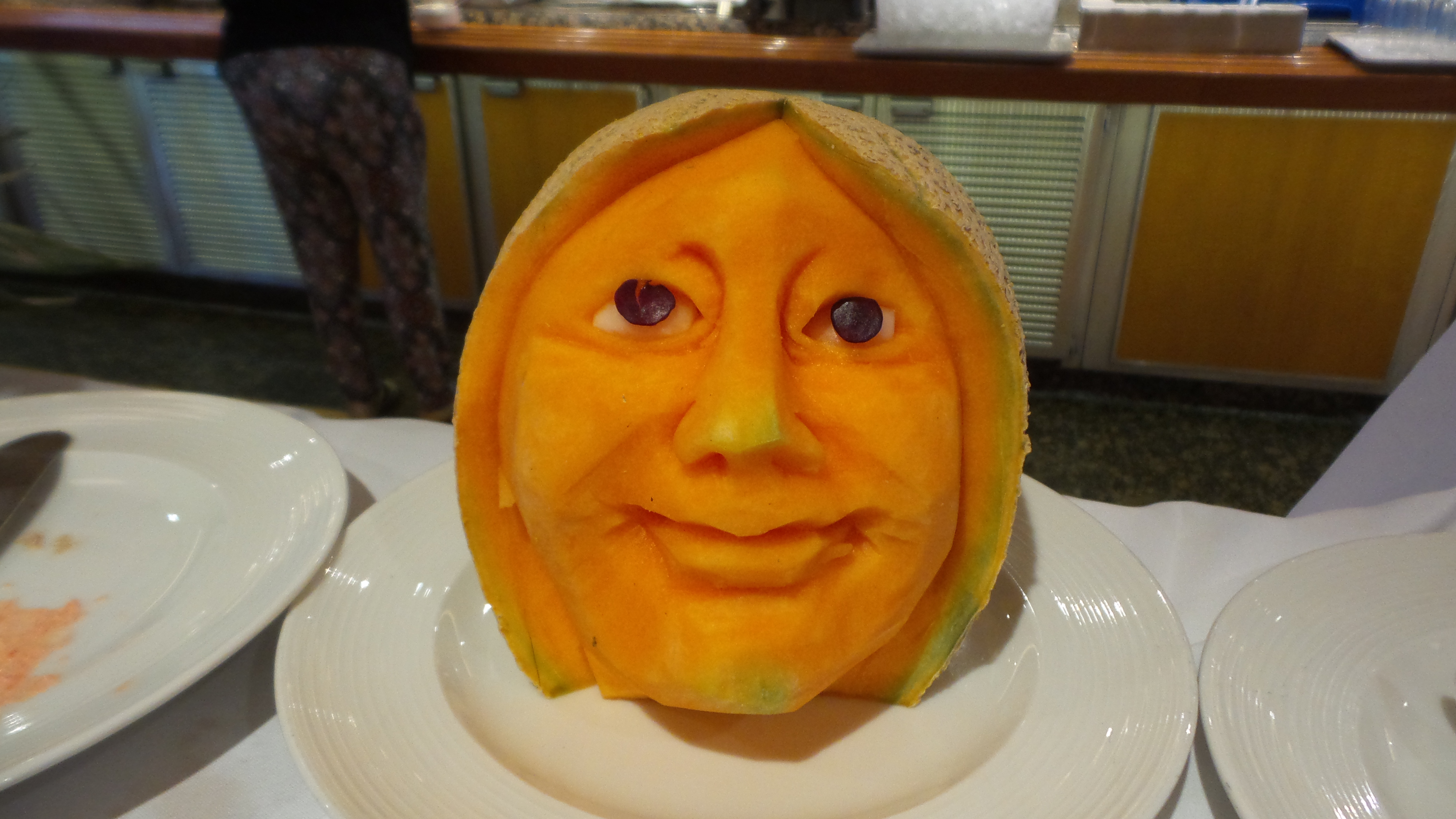 Nella Grand Lobby due chef sono alle prese con sculture eseguite su frutta e vegetali.