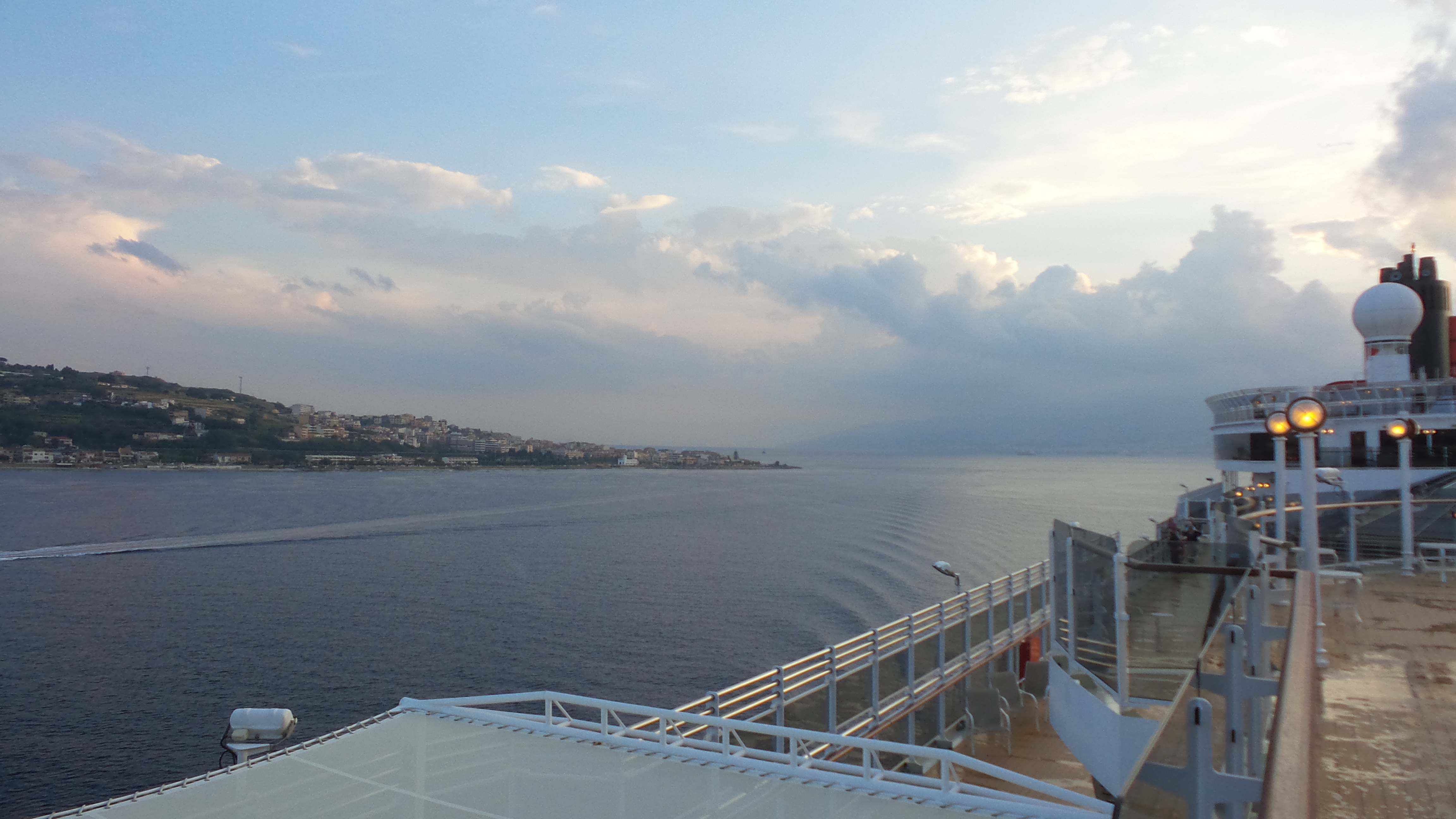 La Queen Elizabeth dalle 17 inizia ad avvicinarsi alle coste calabresi a tribordo (dritta) ed a quelle siciliane che sono alla nostra sinistra, a babordo.