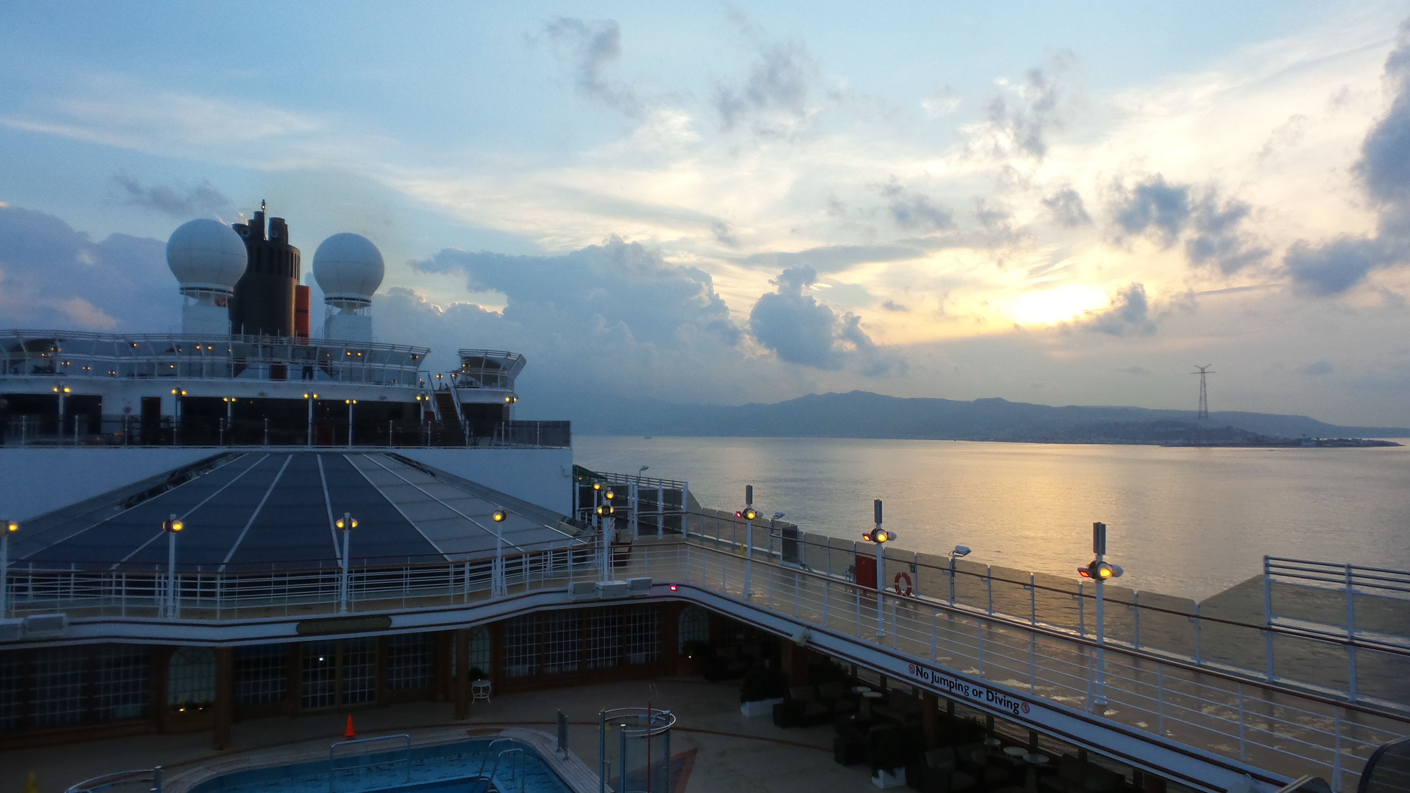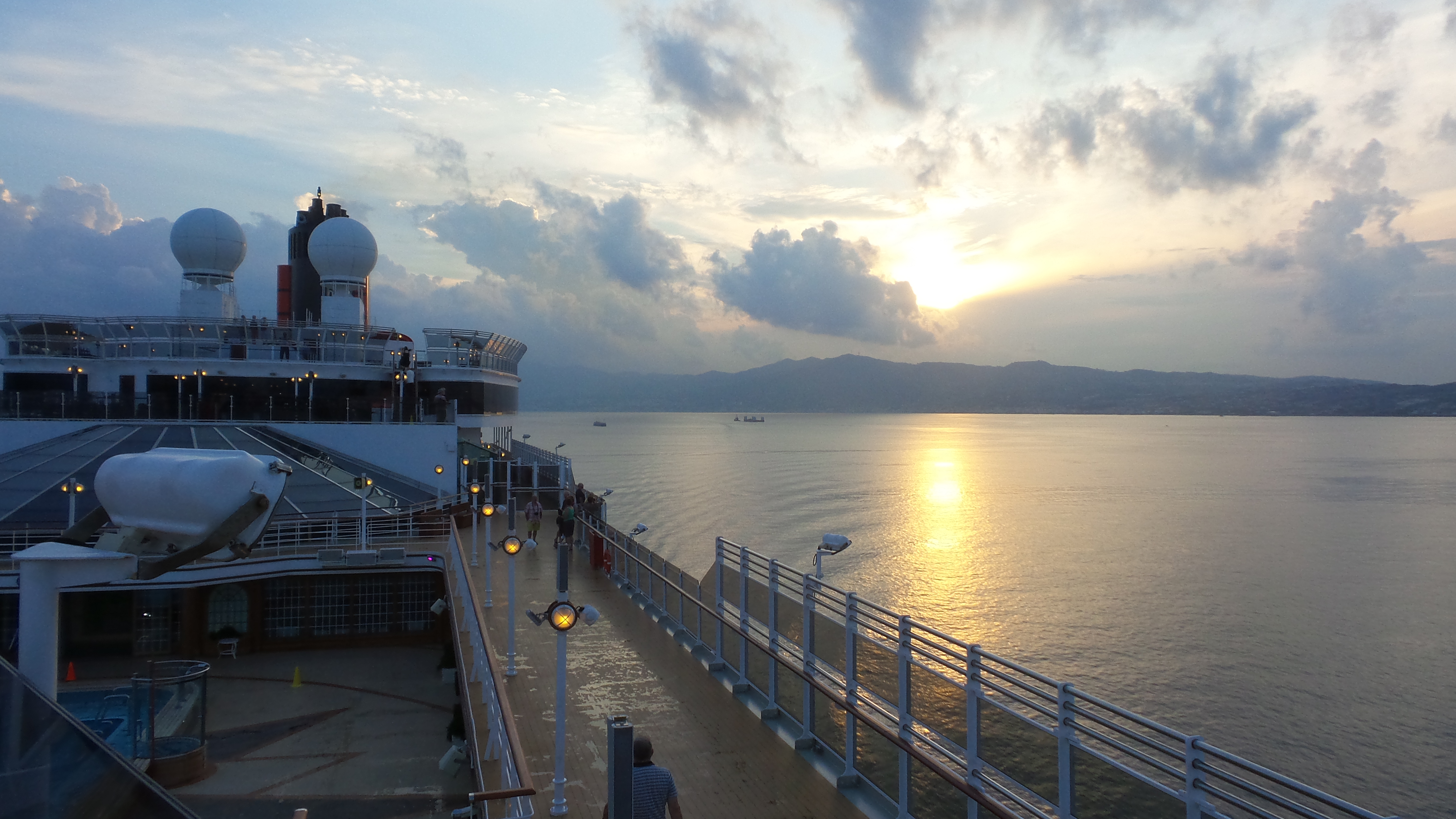 Il pomeriggio scorre via tranquillo, oggi è una giornata particolare, perchè il punto forte è l'attraversamento dello Stretto di Messina ma, nella serata ci sono diversi appuntamenti, dall'incontro con gli ufficiali della nave alle 19:45 al ballo in maschera stile veneziano sino alla serata formale, obbligatorio quindi indossare lo smoking.