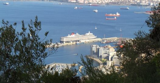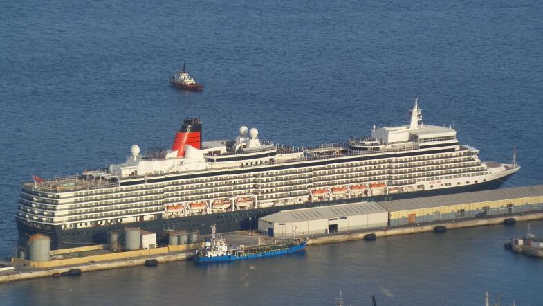 La maestosa nave della Cunard arriva nel porto di Gibilterra prima delle ore 7.
