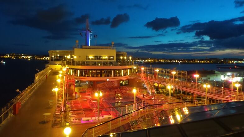 Imperdibile anche stasera il tramonto, con il sole che, piano piano, sparisce all'orizzonte, mentre la Queen Elizabeth continua a navigare verso ovest, probabilmente le rotte prestabilite devono portarci ad una certa distanza dalle coste spagnole che poi, in nottata, dovremo percorrere in parallelo.