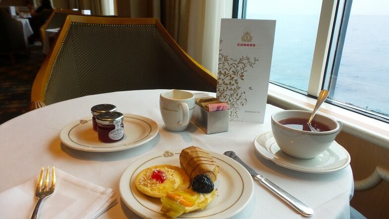 I nuvoloni neri ed il forte vento sono la giusta ispirazione per provare dalle 15.30 alle 16.30 la Cerimonia del tè o tea al Queens Room , dove, come succedeva sui transatlantici di lusso, camerieri con guanti bianchi servono il tè abbinato a canapè e pasticcini. Imperdibile anche questo appuntamento, da provare assolutamente per chi sale su una nave della Cunard.