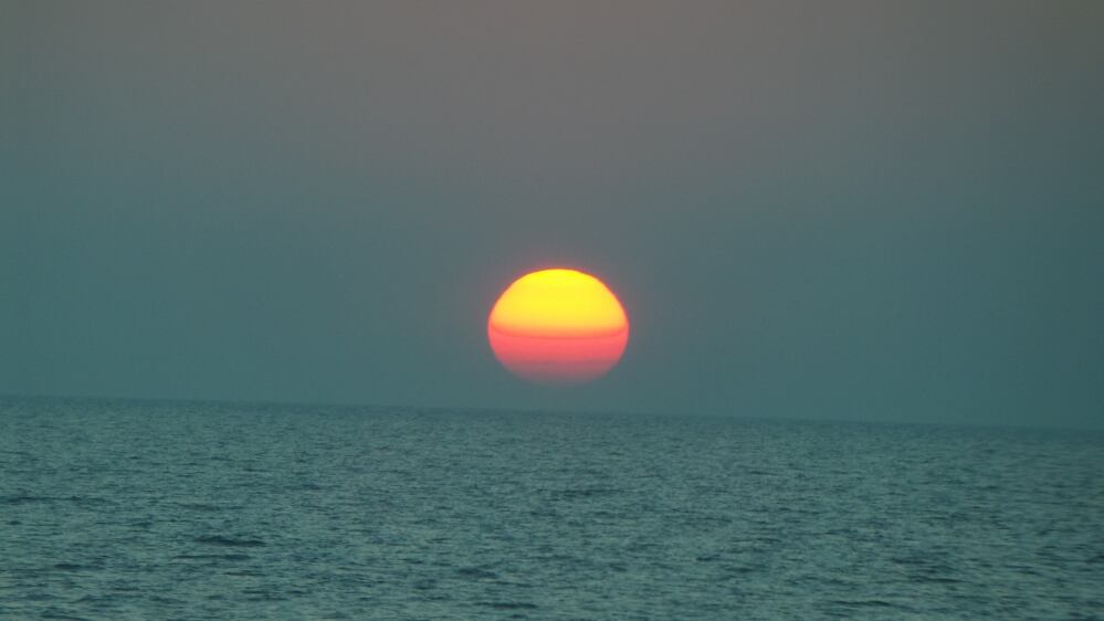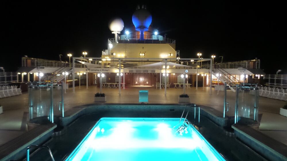 La Queen Elizabeth mette la prua verso sud ovest ed è una meraviglia osservare il sole che tramonta all’orizzonte.