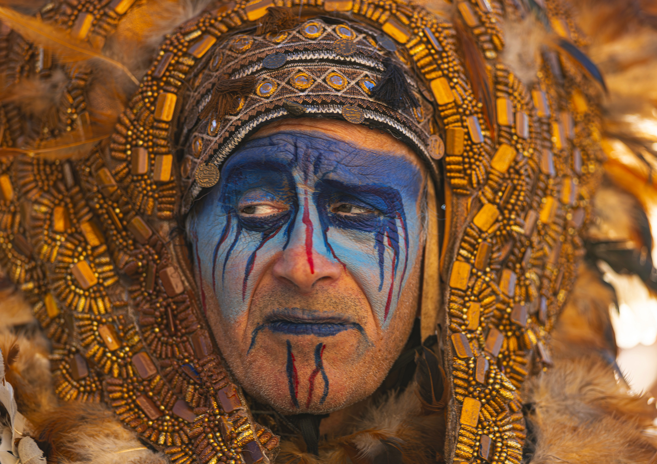 Il carro "Native American Return", realizzato da Fabrizio e Valentina Galli, propone una forte immagine simbolica: un imponente guerriero azteco che si oppone al presidente statunitense Donald Trump. L’opera diventa così metafora della mobilitazione dei popoli indigeni in difesa della propria identità, libertà e memoria storica.