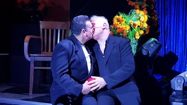 Una volta ho visto l’attore Eros Grimaldi vestito con un tailleur che faceva degli urletti particolari. Questo mi ha ricordato il personaggio Albin – co-protagonista con Renato del “Vizietto” - così mi avvicinai a lui e gli dissi che secondo me avrebbe potuto interpretare alla perfezione quel personaggio. Ecco che così nacque la nostra collaborazione per questo spettacolo. Eros ha la grande sensibilità necessaria per interpretare questo protagonista. Di solito Albin è sempre rappresentato come una “macchietta” invece ha una grande umanità, infatti lui si sente davvero madre! Questo lato della psicologia di Albin è ciò che più mi ha colpito della storia! Il fatto di poter sacrificarsi per questo figlio che non è suo fino a sostituire la madre quando capisce che non sarebbe venuta al matrimonio, mi riempie il cuore.
