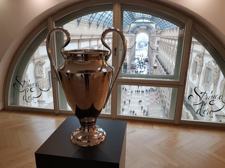 L’intera mostra apre le porte con un ingresso scenografico caratterizzato dall’esposizione della copia originale della coppa della Champions League, che i visitatori possono sollevare e immortalare in una foto-ricordo con la prospettiva più scenografica della Galleria: la visiva sopra l’archivolto.